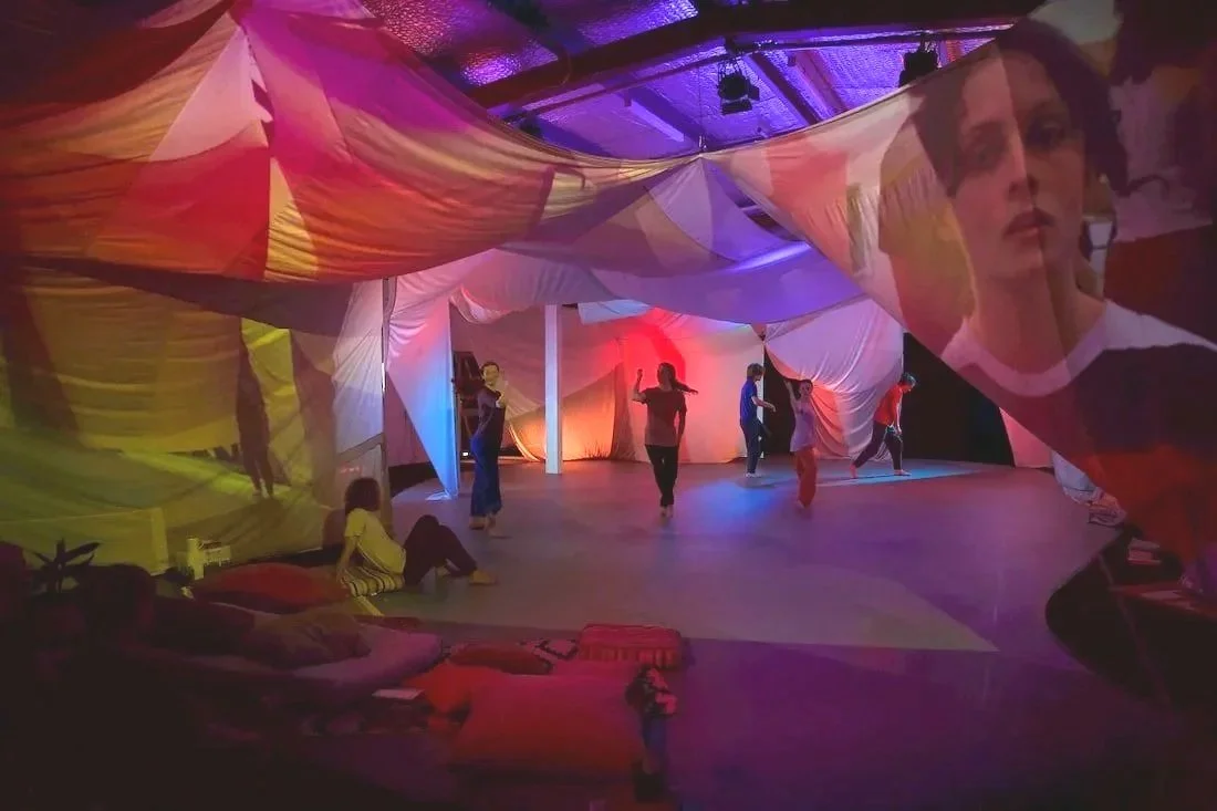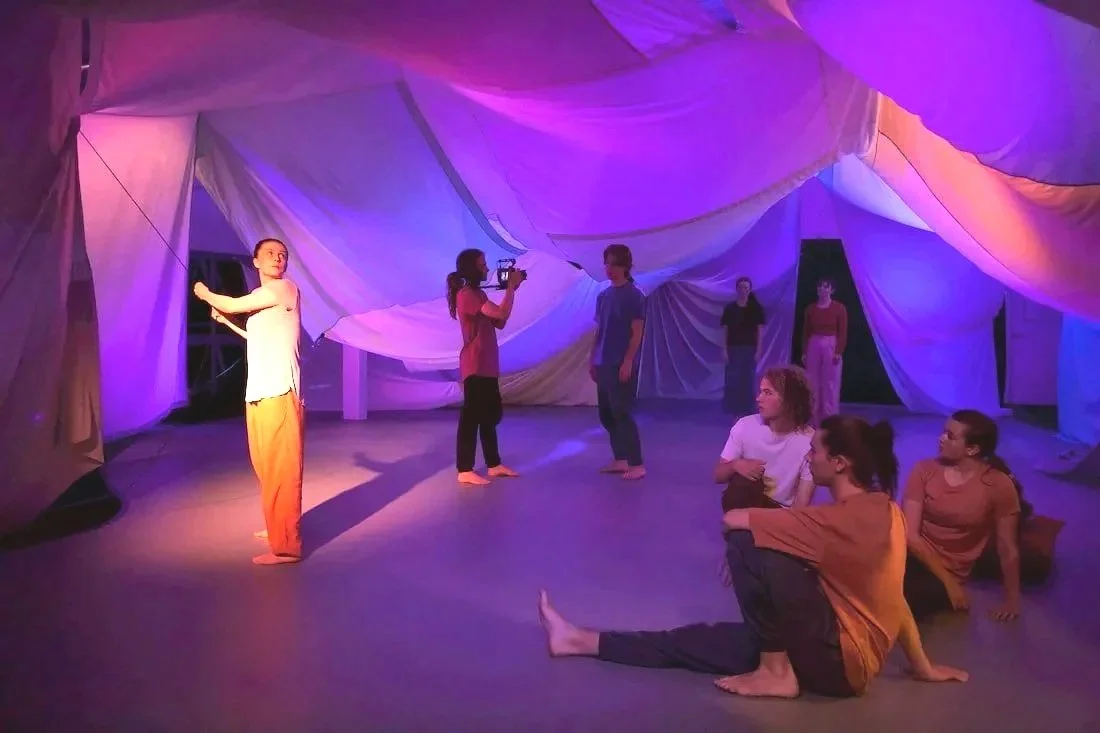8 young people were given the task: to create the best Tent that they could using a complex set of ropes and pulleys, and a huge patchwork of recycled sheets.